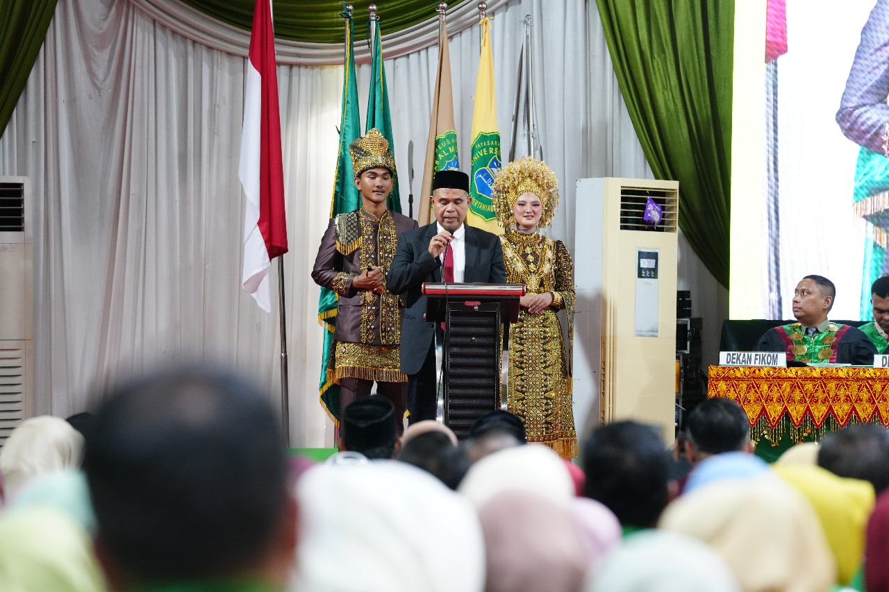 Dalam sambutannya, Murthalamuddin menyampaikan pesan kuat dari Gubernur agar perguruan tinggi di Aceh, khususnya Universitas Al Muslim, menjadi pusat inovasi dan pelopor lahirnya generasi unggul.
