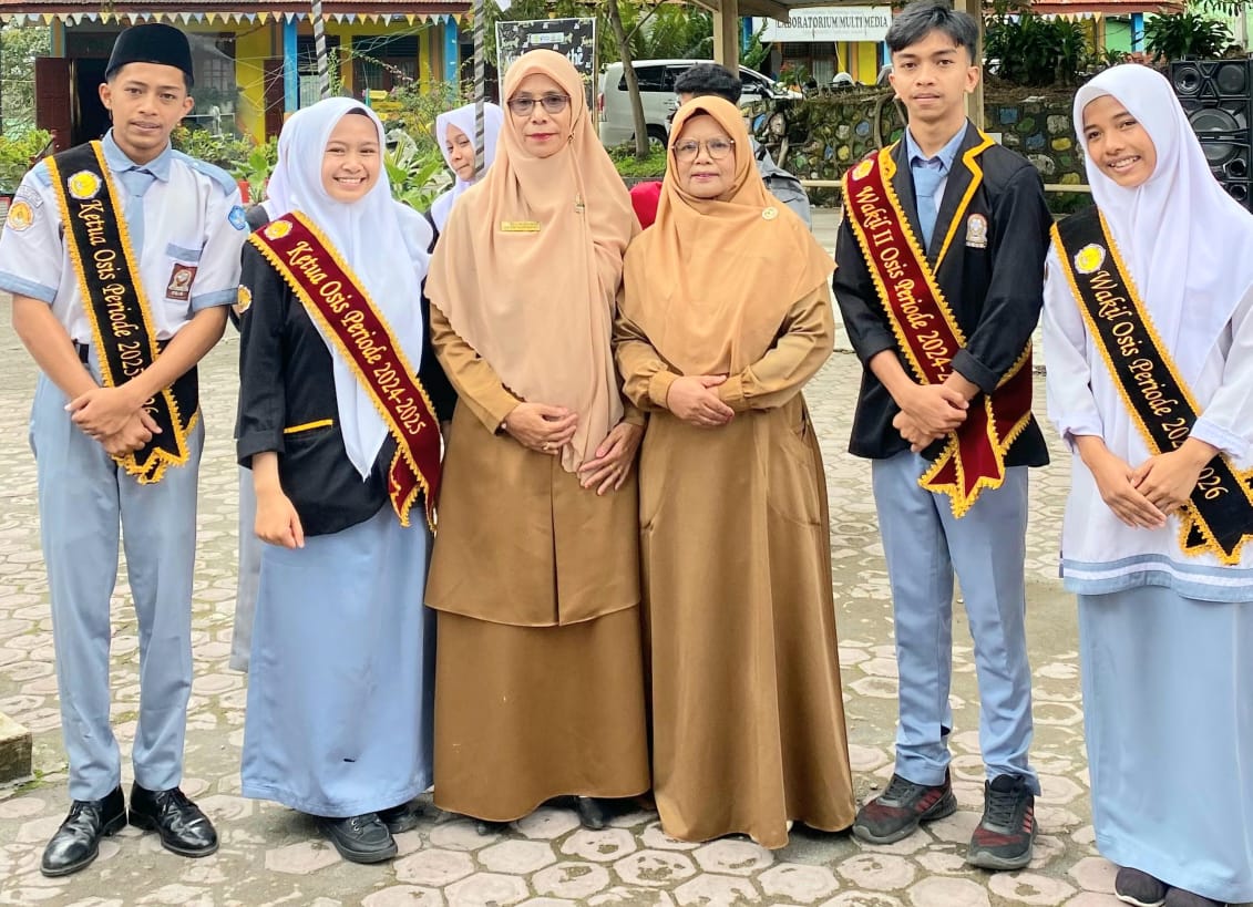 Lebih lanjut Marhamah menuturkan, Pengurus OSIS periode sebelumnya turut hadir dan menyerahkan secara simbolis bendera organisasi kepada Ketua OSIS yang baru sebagai tanda estafet kepemimpinan.