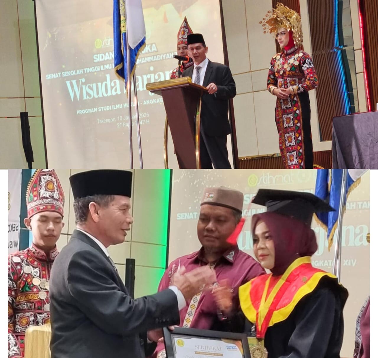 Asakita.news | Takengon — Ketua Pimpinan Wilayah Muhammadiyah (PWM) Aceh, A Malik Musa, SH., M.Hum, hadir dan memberikan arahan dalam Sidang Terbuka Senat Sekolah Tinggi Ilmu Hukum Muhammadiyah (STIHMAT) Takengon, pada prosesi Wisuda Sarjana (S1) Program Studi Ilmu Hukum Angkatan XIV Tahun Akademik 2025/2026.