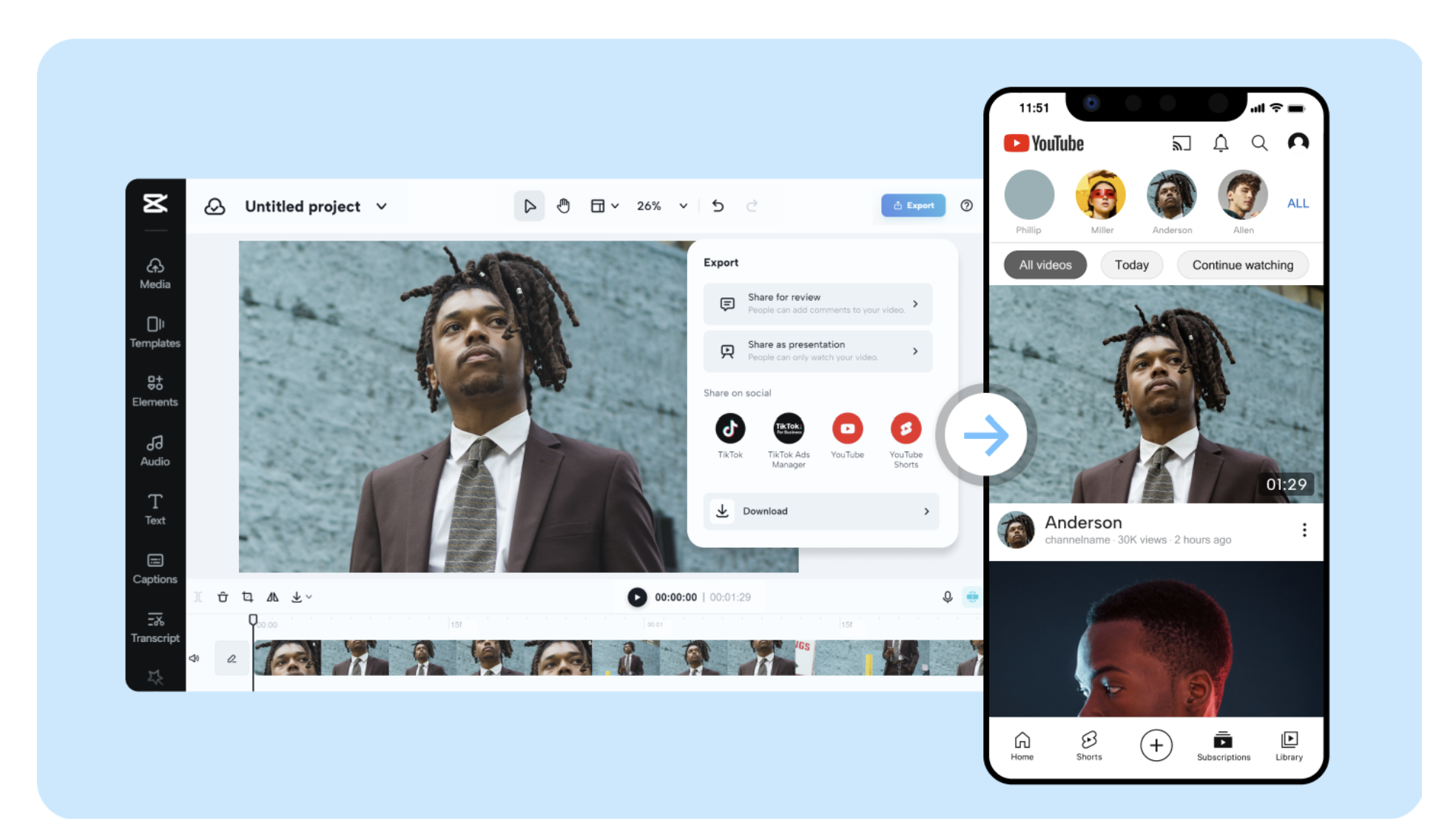 Fitur template juga menjadi keunggulan dari online video editor. Pengguna dapat memanfaatkan template siap pakai untuk membuat video promosi, konten sosial media, atau tutorial. Template ini memungkinkan kreator menyesuaikan video dengan identitas brand atau kebutuhan audiens, tanpa harus memulai dari nol. Dengan demikian, waktu produksi dapat dihemat, sementara kualitas video tetap optimal.