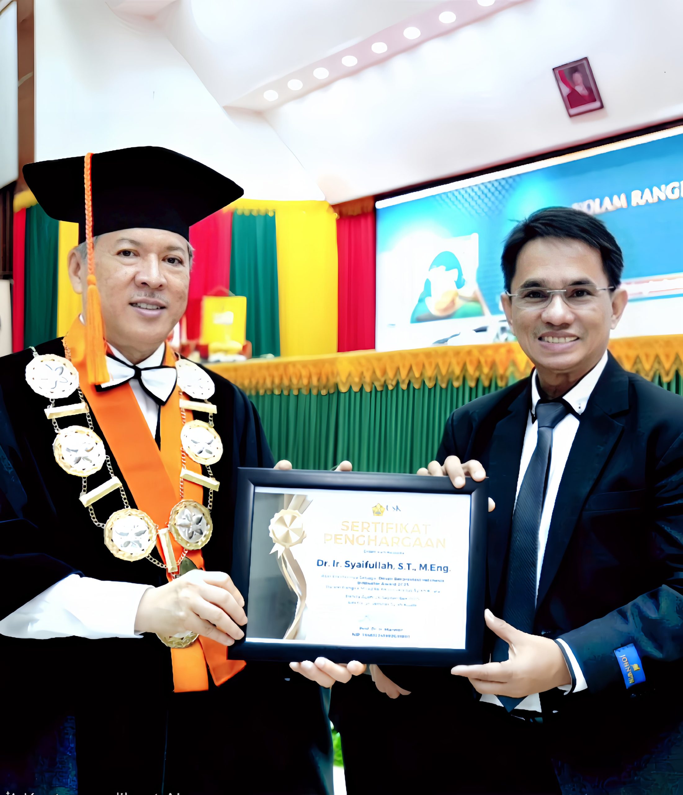Penghargaan tersebut diserahkan oleh rektor atas prestasi yang diraih oleh Syaifullah Muhammad sebagai penerima Indonesia Innovator Awards 2025 dari Badan Riset dan Inovasi Nasional (BRIN) pada 11 Agustus 2025 yang lalu.