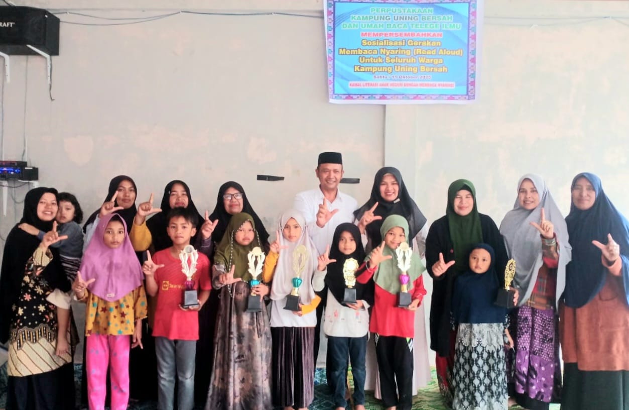 Perpustakaan Kampung Uning Bersah berkolaborasi dengan Umah Baca Telege Ilmu menggelar kegiatan literasi dengan tema “Sosialisasi Gerakan Membaca Nyaring (Read Aloud).
