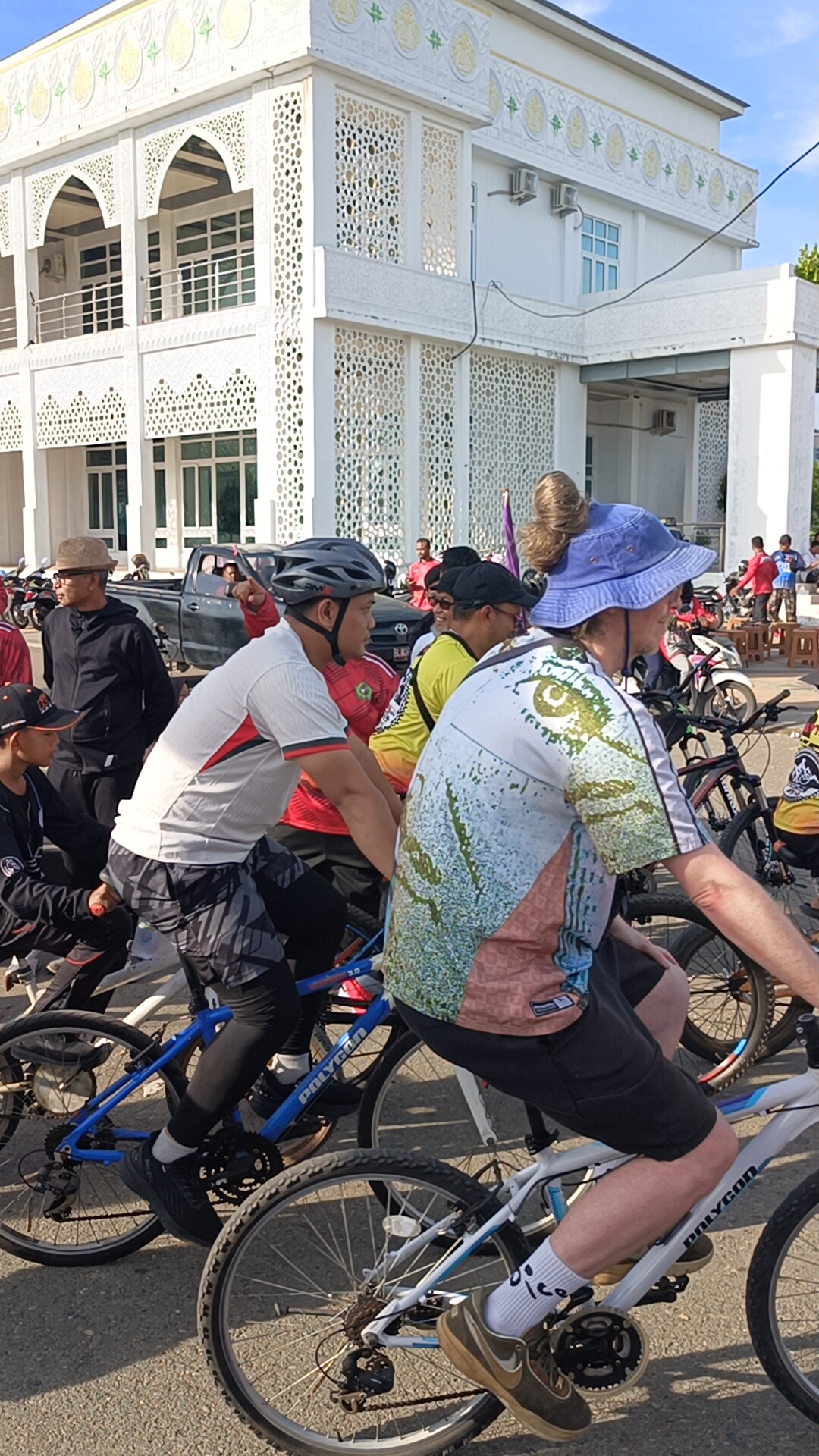 Kegiatan tersebut diikuti berbagai kalangan, mulai dari masyarakat umum, komunitas sepeda, hingga pejabat daerah. Tampak Kapolres Pidie turut serta mengayuh sepeda bersama istrinya, menambah semarak suasana.